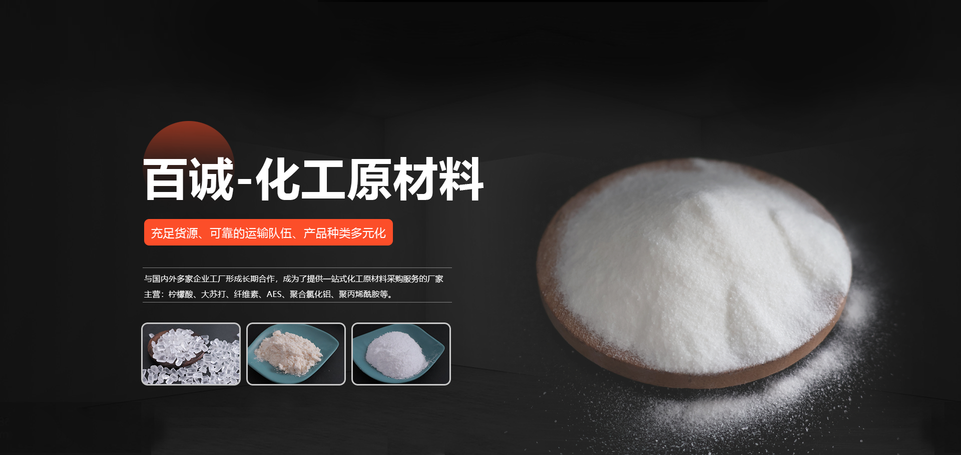 成立于山東的濰坊百誠(chéng)化工有限公司多年來(lái)與國(guó)內(nèi)外多家企業(yè)工廠 形成長(zhǎng)期合作,形成了競(jìng)爭(zhēng)力的化工原材料供應(yīng)、銷(xiāo)售和服務(wù) 渠道,主營(yíng):大蘇打、葡萄糖、檸檬酸、纖維素、消泡劑、AES等。